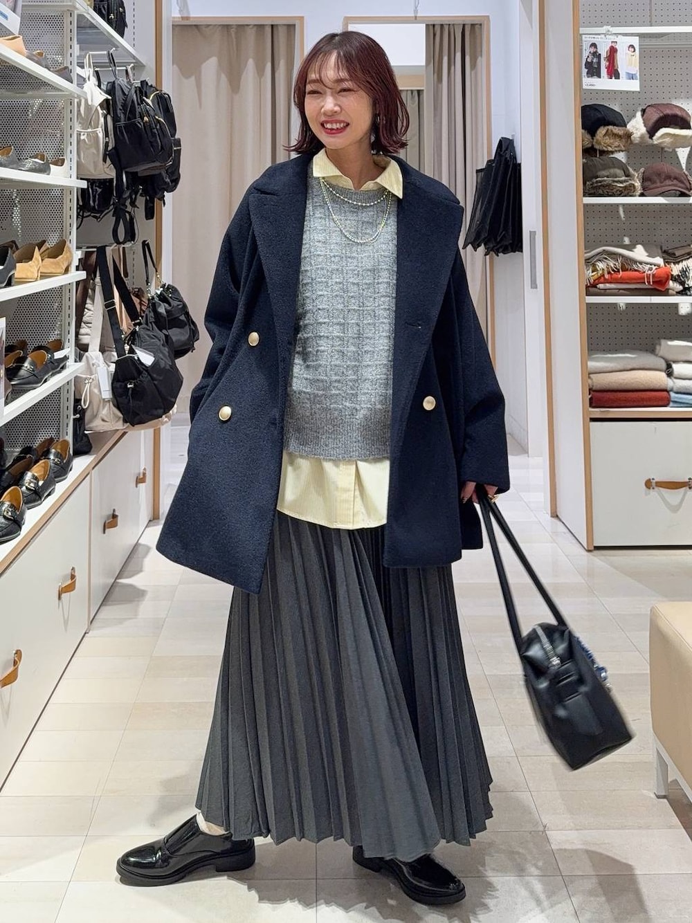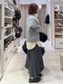 ▼詳しいサイズ感や着心地も記載しています▼ ふわふわニットにプリーツスカートを合わせてカジュアルコーデにしました(^^) ニットはミックスカラーで冬らしいふわふわ感があって可愛いです!程良い厚みで着膨れもしません!イエローストライプのシャツをポイントに! プリーツスカートはしっかり目のプリーツでストンと細見えします! 【着用サイズ】 アウター→Mサイズ ゆったりオーバーサイズです! お尻がスッポリ隠れる長さです! 首元を閉めるとスタンドコート、開けるとピーコートとして使うことが出来ます! 肩の落ちたデザインなのでカチッとしすぎず、キレイめにもカジュアルにも使えます! ストレッチが効いているので肩や腕も動かしやすいです! トップス→Mサイズ ゆったりしています! モヘアライクですが透け感少なで冬も着やすいです! ミックスカラーでオシャレ見えします! シャツ→Lサイズ Mでもゆったりしていますがカジュアルにオーバーサイズで着た買ったのでワンサイズアップしました! 皺になりにくいのでお手入れ楽ちんです! スカート→レギュラーサイズ ウエスト後ろはゴムなので楽に履けます! レギュラーはくるぶしにかかる丈で、ショートはふくらはぎが隠れるくらいの丈です! 洗濯機洗い可能でノーアイロンで着られます! シューズ→Mサイズ いつも通りで◎ 履き口にゴムが入ってるので脱ぎ履きが楽です!