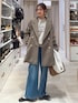▼詳しいサイズ感や着心地も記載しています▼ モールニットにあったかデニムを合わせて大人カジュアルコーデにしました(^^) ニットは柔らかくて肌触り抜群!毛玉にもなりにくいです! デニムは裏起毛で暖かさも◎ アウターは絶妙な着丈でゆったりなのにスッキリ見えます!羽織るだけでオシャレ見え出来るデザイン! 【着用サイズ】 アウター→Mサイズ ゆったりオーバーサイズです! お尻がスッポリ隠れる長さです! 首元を閉めるとスタンドコート、開けるとピーコートとして使うことが出来ます! 肩の落ちたデザインなのでカチッとしすぎず、キレイめにもカジュアルにも使えます! ストレッチが効いているので肩や腕も動かしやすいです! ニット→Mサイズ 程よいゆとりがあります! モール素材なのでフワッとした肌触りが良いです! ベーシックな流行り廃りのないデザインです! デニム→Sサイズ いつも通りで◎ ウエストはゴムで楽ちんです! 生地も柔らかくて動きやすいです! バギーデニムより太めのシルエットです! あったかタイプですが分厚過ぎず着膨れしないです! シューズ→Mサイズ LサイズだとカパカパするのでMサイズを選びました! クッションが効いていて歩きやすいです!