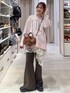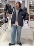 ▼詳しいサイズ感や着心地も記載しています▼ 配色ニットにバギーデニムを合わせてカジュアルコーデにしました(^^) ニットは長めの着丈で体型カバーにも◎もこもこしないので着膨れもしないです!配色デザインでそのまま着るだけでオシャレ!リバーシブルなのでロゴ面も楽しめます! アウターは物凄く軽くて着心地最高です!オーバーサイズ派はX Lがオススメ! キレイめに着たい方はMサイズ(いつも通り)が◎(5枚目コーデ) 【着用サイズ】 アウター→X Lサイズ ゆったりオーバーサイズで着たい方はX Lがオススメ! 着丈長めで太ももまで隠れる長さです! リアルダウンですがモコモコし過ぎず着膨れしにくいです! ビックリするくらいとっても軽いです! ニット→フリーサイズ 一枚でで“ロゴデザイン”と“配色デザイン”を楽しめる! ゆったり着丈も長めで体型拾わない! 厚手過ぎないサラッと素材だけど目が詰まっているからしっかり暖かい! 着膨れもしにくいです! サイドスリット入りでスッキリ見え! デニム→Mサイズ いつもはSサイズを着用していますが、太めに履きたかったのでMサイズを選びました! 着丈も長くなり厚底と合わせると脚長効果有り! ウエスト後ろ側がゴムなので楽に履けます! 股上深めでウエストインすると脚長効果抜群◎ ノータックなので腰回りがスッキリ見えます! 足のラインを拾わない太めのストレートデザインで体型カバーにも◎ シューズ→Mサイズ LサイズだとカパカパするのでMサイズを選びました! クッションが効いていて歩きやすいです!