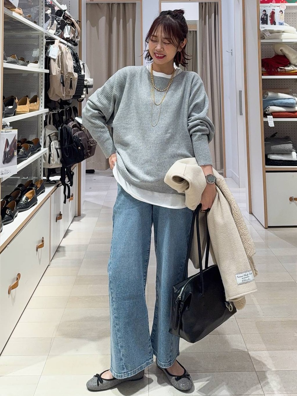 ▼詳しいサイズ感や着心地も記載しています▼ ドルマンニットにワイドデニムを合わせて大人カジュアルコーデにしました(^^) ニットはゆったりシルエットでシンプルですがオシャレ見えします!オンオフ使えます!カジュアルに着たかったので白Tを重ねてポイントに! アウターは切り替えデザインがオシャレ! 【着用サイズ】 アウター→Mサイズ ゆったりしています! お尻が隠れる長さです! 柔らかくて羽織りやすいです! 裏地もしっかりしていて、厚着もしても問題なく羽織れます! ニット→Mサイズ ゆったりしていますがそのまま着てもキレイ見えするデザインです! 程よい厚みで柔らかくてチクチク感はありません! ボートネックなので顔周りもスッキリ見えます! Tシャツ→レギュラーサイズ 長めにしっかり裾を出したかったのでレギュラーを選びました! デニム→Sサイズ いつも通りで◎ ウエストはゴムで楽ちんです! 生地も柔らかくて動きやすいです! バギーデニムより太めのシルエットです! シューズ→Mサイズ LサイズだとカパカパするのでMサイズを選びました! クッションが効いていて歩きやすいです!