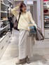 ▼詳しいサイズ感や着心地も記載しています▼ クルーニットにコーデュロイスカートを合わせてカジュアルコーデにしました(^^) 全体的にふわっとしたカラーでまとめて優しい雰囲気に!ニットはオンオフ使えます!後ろ姿もポイント! アウターはリバーシブル!どちらも一軍で使えます◎ 【着用サイズ】 アウター→レギュラーサイズ ゆったりしています! お尻にかかる丈です! ボア面とナイロン面の2way仕様なので雰囲気を変えて使えます! 厚手でしっかり防寒出来ますが軽くて羽織りやすいです! 裾を絞ってフワっと着ることも出来ます! ニット→Mサイズ いつも通りで◎ 程よくゆとりがあります! さらっと肌触りも良くチクチク感はありません! 後ろ側にスリットが入っていてポイントになります! スカート→Mサイズ ウエストはゴムで楽ちんです! ピタッとしないのでお尻のラインも響きにくいです! 細いコールでカジュアル過ぎず、キレイめにも◎ ストレッチと後ろスリットで歩きやすいです! ブーツ→Mサイズ 23.5〜24.0ですが、Mで問題なく履けました! とても軽くて歩きやすくて暖かいです!
