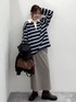 ▼詳しいサイズ感や着心地も記載しています▼ ラガーシャツにコーデュロイスカートを合わせてカジュアルコーデにしました(^^) スカート合わせならメンズライクになり過ぎないのでラガーシャツも取り入れやすいです!ハイネックを重ねて可愛く防寒! ブルゾンはリバーシブルで使えて着回しできます!スッキリまとまり、キレイめコーデにも合います! 【着用サイズ】 アウター→レギュラーサイズ ゆったりしています! レギュラーはお尻が隠れる長さです! お袖にボリュームがあり女性らしさもあるので、ハードになり過ぎず使いやすいです! フェイクファー面とリバーシブルで使えます! ファーは毛足が短いのでモコモコし過ぎず毛も抜けにくいです! インナー→Mサイズ いつも通りで◎ 柔らかくて着心地抜群です! スカート→Mサイズ ウエストはゴムで楽ちんです! ピタッとしないのでお尻のラインも響きにくいです! 細いコールでカジュアル過ぎず、キレイめにも◎ ストレッチと後ろスリットで歩きやすいです! シューズ→Lサイズ Mサイズでも履けますが、厚手の靴下も履きたいのでLサイズを選びました! ボリュームのあるソールですが軽くてしっかりしているので歩きやすいです!