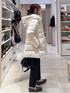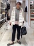 ▼詳しいサイズ感や着心地も記載しています▼ 配色ニットにテーパードパンツを合わせてキレイめコーデにしました(^^) ニットは長めの着丈で体型カバーにも◎もこもこしないので着膨れもしないです!配色デザインでそのまま着るだけでオシャレ!リバーシブルなのでロゴ面も楽しめます! アウターはウエストシェイプされていて細見えします! 【着用サイズ】 アウター→Mアウター いつも通りで◎ お尻までスッポリ隠れる長さです! リアルダウンで厚手なのでしっかり防寒出来ます! ウエストの内側にコードがついているので、ウエストをシャイプして着ることが出来ます! フードの内側がフェイクファーになっていてポイントになります! ニット→フリーサイズ 一枚でで“ロゴデザイン”と“配色デザイン”を楽しめる! ゆったり着丈も長めで体型拾わない! 厚手過ぎないサラッと素材だけど目が詰まっているからしっかり暖かい! 着膨れもしにくいです! サイドスリット入りでスッキリ見え! テーパードパンツ→Sサイズ やや大きめの作りです! XSサイズも履けますがふくらはぎが気になるので、Sサイズを選びました! ウエストはゴムでとても楽な履き心地なのに綺麗なシルエットが出ます! タックのお陰で腰や太ももにゆとりがあり体型カバー出来て◎ 足首が少し見える丈感でスッキリ見えます! センターラインのお陰で脚長効果あり! シューズ→Mサイズ LサイズだとカパカパするのでMサイズを選びました! クッションが効いていて歩きやすいです!