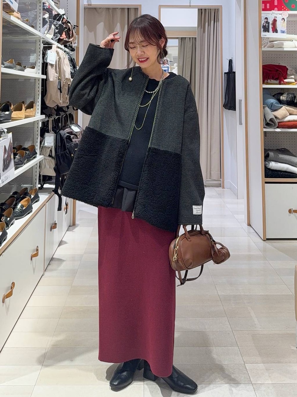 ▼詳しいサイズ感や着心地も記載しています▼ 短め丈のニットにニットスカートを合わせてキレイめコーデにしました(^^) ニットは短めなので同色のペプラムTを重ねて可愛く!ボルドーのスカートで甘くならない大人なコーデに! スカートはよく伸びて動きやすいのに細見え! アウターは切り替えデザインがオシャレ! 【着用サイズ】 アウター→Mサイズ ゆったりしています! お尻が隠れる長さです! 柔らかくて羽織りやすいです! 裏地もしっかりしていて、厚着もしても問題なく羽織れます! ニット→ショートサイズ ゆったりしています! ウエストがしっかり隠れる長さですが長過ぎず使いやすいです! ラウンドカットのデザインがオシャレ見え! 程良い厚みの素材でチクチク感もなく肌触り◎ スカート→Mサイズ いつも通りで◎ ウエストゴムで楽ちんです! 起毛がかった冬素材で暖かさも◎ 後ろスリットで歩きやすいです! シューズ→Lサイズ Mサイズでも履けますが、厚手の靴下も履きたいのでLサイズを選びました! 軽くてしっかりしているので歩きやすいです!
