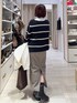▼詳しいサイズ感や着心地も記載しています▼ ボーダーニットにコーデュロイスカートを合わせてカジュアルコーデにしました(^^) ニットはふわふわ素材で少し短めのデザインでそのまま着るだけで可愛いです!シャツや白Tをレイヤードしても◎ スカートはIラインなので細見え! アウターは切り替えデザインが可愛いです! 【着用サイズ】 アウター→Mサイズ(メンズ) メンズサイズなのでゆったりしています! お尻が隠れる長さです! とても軽くて羽織りやすいです! ニット→Mサイズ ゆったり大きめです! 着丈は少し短めなのでそのまま着るだけでスッキリ! 少し厚手です!チクチク感は感じませんでした! スカート→Mサイズ ウエストはゴムで楽ちんです! ピタッとしないのでお尻のラインも響きにくいです! 細いコールでカジュアル過ぎず、キレイめにも◎ ストレッチと後ろスリットで歩きやすいです! シューズ→Lサイズ Mサイズでも履けますが、厚手の靴下も履きたいのでLサイズを選びました! ボリュームのあるソールですが軽くてしっかりしているので歩きやすいです!