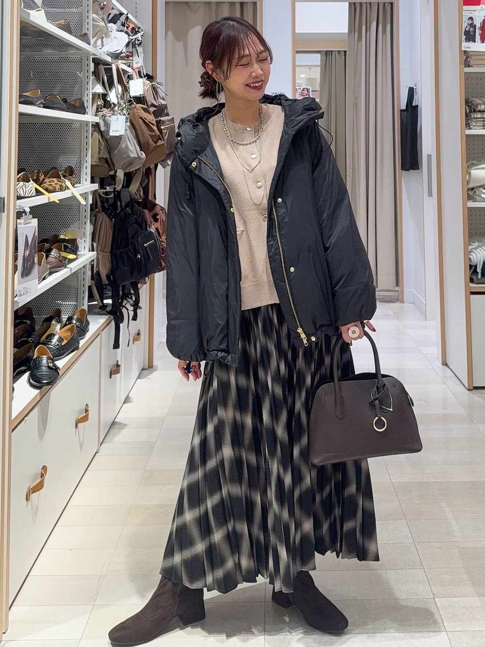 ▼詳しいサイズ感や着心地も記載しています▼ カーディガンにプリーツスカートを合わせてキレイめコーデにしました(^^) ボタンがポイントになるデザインでカーディガンでも地味にならずに使えます! チェックのプリーツスカートは秋冬定番!履くだけでしっかりポイントに! アウターはキレイめにもカジュアルにも◎リアルダウンで着ていないような軽さです! 【着用サイズ】 アウター→Mサイズ ゆったりしていて着やすいです!カジュアルに着たい方はサイズアップしてオーバーサイズで着るのもおすすめ! リアルダウンですがモコモコし過ぎず着膨れしにくいです! ビックリするくらいとっても軽いです! カーディガン→レギュラー ゆったりしていて着やすいてます! 滑らかな肌触りでチクチク感もなし! 厚過ぎず薄過ぎず長く使えます! スカート→レギュラーサイズ ウエスト後ろはゴムなので楽に履けます! レギュラーはくるぶしにかかる丈で、ショートはふくらはぎが隠れるくらいの丈です! 洗濯機洗い可能でノーアイロンで着られます! シューズ→Lサイズ Mサイズでも履けますが、厚手の靴下も履きたいのでLサイズを選びました! ソールですが軽くてしっかりしているので歩きやすいです!