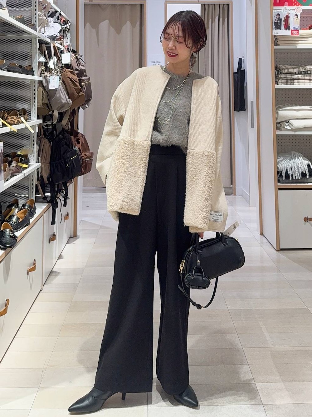 ▼詳しいサイズ感や着心地も記載しています▼ シャギーニットにストレートパンツを合わせてキレイめコーデにしました(^^) ニットは毛足が長めでふわふわ感が高見え!肌触りも抜群です! パンツはオンオフどちらにも使えます! パンツは太すぎないワイドストレートで脚長効果あり! アウターは切り替えデザインがオシャレ! 【着用サイズ】 アウター→Mサイズ ゆったりしています! お尻が隠れる長さです! 柔らかくて羽織りやすいです! 裏地もしっかりしていて、厚着もしても問題なく羽織れます! ニット→ショートサイズ ゆったりしています! ショートでも後ろ側はお尻にかかる長さです! 肌触りも良くチクチク感はありません! パンツ→Mサイズ ウエストはSでも問題なかったのですが、長さとシルエットはMの方が綺麗なのでMサイズを選びました! 程よいワイドシルエットで足が綺麗に見えます! ウエストはゴムで楽ちんですが、お仕事にも使えるような素材とデザインです! しっかり厚みはありますが着膨れ感は気になりません! シューズ→Mサイズ LサイズだとカパカパするのでMサイズを選びました! 足が物凄くキレイに見えます!