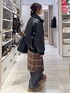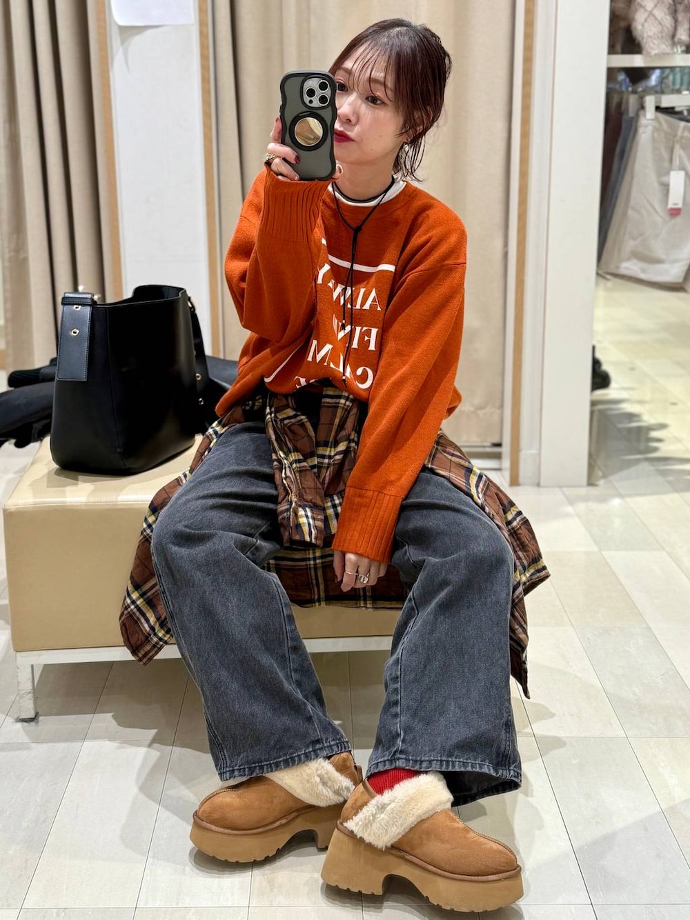 ▼詳しいサイズ感や着心地も記載しています▼ ※ニットのロゴ面のカラーはかなり明るく映っていますが、画像より落ち着いたテラコッタカラーです! ロゴニットにブラックワイドデニムを合わせてカジュアルコーデにしました(^^) こっくりした色が可愛いニットは一枚で主役に!もこもこしないので着膨れもしないです!リバーシブルなので配色面も楽しめます! チェックシャツを腰巻きしてポイントに! 辛口なフェイクレザーアウターをプラスして甘辛に! 【着用サイズ】 アウター→Mサイズ ゆったり大きめです! 厚手ニットも余裕で着られます! 裏地もしっかりで風も通さないから冬も使える! 首元のリブが可愛いです! ニット→フリーサイズ 一枚でで“ロゴデザイン”と“配色デザイン”を楽しめる! ゆったり着丈も長めで体型拾わない! 厚手過ぎないサラッと素材だけど目が詰まっているからしっかり暖かい! 着膨れもしにくいです! サイドスリット入りでスッキリ見え! デニム→Mサイズ ゆったり太めで履きたかったのでMサイズを選びました! ウエストにゴムやタックのないデザインなのでスッキリ綺麗に見えます! サイドのステッチが斜めに入っていてオシャレに見えます! 太めのシルエットでトレンド感も◎ シューズ→Mサイズ Mサイズで問題なく履けます! 厚底ですが軽くて歩きやすいです! もこもこなのでとってもあったかいです!