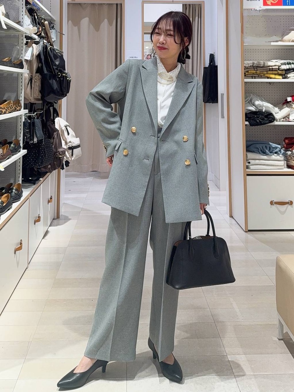▼詳しいサイズ感や着心地も記載しています▼ 卒業・入学コーデ ダブルジャケットに同素材のワイドパンツを合わせてセットアップコーデにしました(^^) お仕事コーデにぴったり!裏地も付いていてしっかり目の生地感なのでキチンとしたい時にも間違いなし! ジャケットもパンツも合わせ方でカジュアル使いにも◎ ブラウスはレースの襟がオシャレです! ↓他のコーデは↓ 【着用サイズ】 ジャケット→Mサイズ いつも通りで◎ ダブルのデザインでゆったりしています! お尻が隠れる長さです! 裏地もありしっかりした生地感です! キチンとしたシーンにももちろん◎ ブラウス→Mサイズ いつも通りで◎ レースの襟は取り外し可能です! しなやかな素材で落ち感のある素材です! トップス→Mサイズ ゆとりもあってピタッとしないです! 薄手の柔らかいニット素材です! チクチク感なし! パンツ→Mサイズ しっかりゆとりと長さが欲しかったのでMサイズを選びました! ウエスト後ろはゴムなので楽ちんです! しっかりしたスーツのような生地感です! シューズ→23.5 いつも通りのサイズで大丈夫です! ヒールでも歩きやすいです!