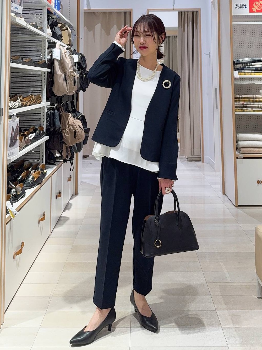 ▼詳しいサイズ感や着心地も記載しています▼ 卒業・入式コーデ♡ ジャケット・パンツ・ブラウスの3点セットを着用しました(^^) ブラウスはペプラムのデザインが可愛いです!ウエストインしなくて良いので体型カバーにも◎ セットだけで卒業式にも入学式にもそのまま使えますが、ブラウスを変えたり、ジレに変えたり、着回しも万能です! 【着用サイズ】 3点セット→Mサイズ いつも通りで◎ ブラウス、ペプラムブラウス、テーパードパンツの3点セットです!そのまま着るだけで綺麗にキマります☆ ジャケットはVネックなのでスッキリ見えます! ブラウスはややAラインのデザインで出して着ても綺麗です!しっかりめの生地感で一枚でもキチンと感があります! パンツは程良いゆとりがあり足のラインを拾いにくいです!ウエストはゴムなので楽に履けます! ストレッチ素材でとても動きやすいです◎ 洗濯機洗いOKでお手入れ楽ちん! シューズ→Mサイズ LサイズだとパカパカするのでMサイズを選びました!やや大きめの作りです! ヒールが高過ぎず歩きやすいです!スタイルアップして見えます!