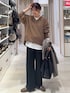 せこ子(GLOBAL WORK イオンモール長久手)のニット/セーター「メルティリブVネックプルオーバー/579519」を使ったコーディネート