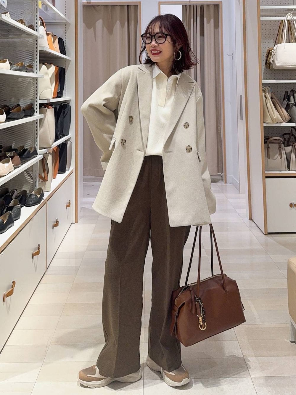 ▼詳しいサイズ感や着心地も記載しています▼ ドッキングニットにワイドパンツを合わせてキレイめカジュアルコーデにしました(^^) ニットはシャツとドッキングデザインで着るだけでトレンド感アップ!厚手過ぎないのでこれから春まで使えます! コートは厚手過ぎずジャケットデザインなので春先のアウターにも◎ 【着用サイズ】 コート→Mサイズ いつも通りで◎ ダブルのデザインでゆったりしています! お尻が隠れる長さです! 裏地もありしっかりした生地感でコートとジャケットの間くらいの感じです! ニット→Mサイズ ゆったりしています! サラッとした素材で厚手過ぎず薄手過ぎず、春まで長く使えます! 着方でキレイめにも、カジュアルにも◎ パンツ→Sサイズ スッキリ履きたかったのでSサイズを選びました! 程よいワイドシルエットで足が綺麗に見えます! ウエストはゴムで楽ちんですが、お仕事にも使えるような素材とデザインです! あったが素材でももこもこ感はなく着膨れしません! スニーカー→Lサイズ 靴下も履くことを考えると23.5〜24.0の私はLサイズがジャストでした! とても軽くて歩きやすいです!