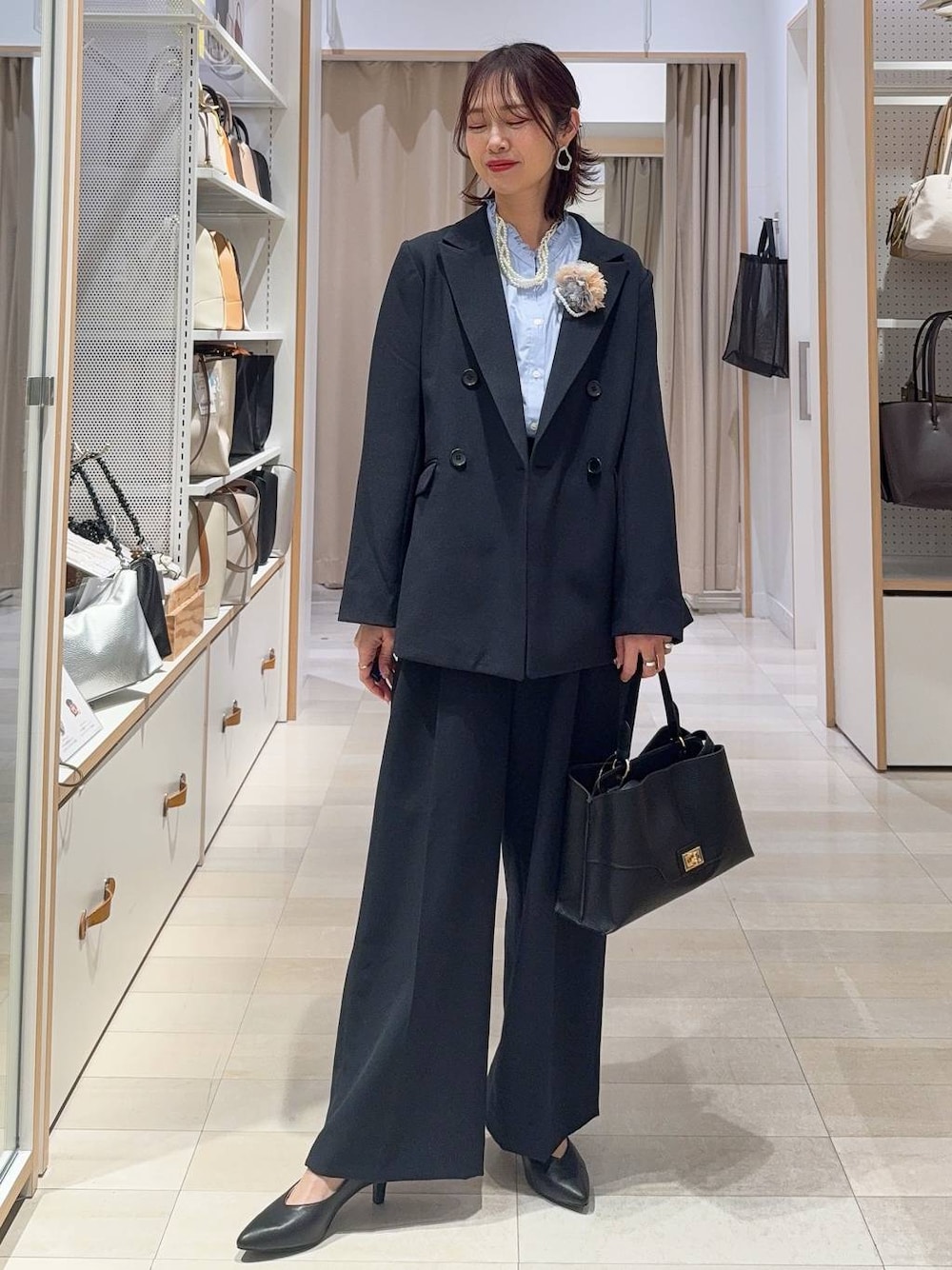 ▼詳しいサイズ感や着心地も記載しています▼ 卒業・入学コーデ ダブルジャケットに同素材のワイドパンツを合わせてセットアップコーデにしました(^^) オケージョンにも、お仕事コーデにぴったり!裏地も付いていてしっかり目の生地感なのでキチンとしたい時にも間違いなし!ジャケットもパンツも合わせ方でカジュアル使いにも◎ インナーブラウスはシャツ素材なのでオケージョン以外でも普段使いしやすいです! ↓他のコーデは↓ 【着用サイズ】 ジャケット→Mサイズ いつも通りで◎ ダブルのデザインでゆったりしています! お尻が隠れる長さです! 裏地もありしっかりした生地感です! キチンとしたシーンにももちろん◎ ブラウス→Mサイズ ゆったりしています! シャツ素材なので普段使いにも◎ ノーアイロンで着られます! トップス→Mサイズ ゆとりもあってピタッとしないです! 薄手の柔らかいニット素材です! チクチク感なし! パンツ→Mサイズ Sサイズでも履けますが、ゆったり履きたかったのでMサイズにしました!カジュアルにも履きたい方はゆったりめでも◎ 丈もしっかりあるので問題ないです! ウエスト後ろはゴムなので楽ちんです! しっかりしたスーツのような生地感です! シューズ→23.5 いつも通りのサイズで大丈夫です! ヒールでも歩きやすいです!