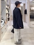 せこ子(GLOBAL WORK イオンモール長久手)のチェスターコート「軽やかストレッチ襟2WAYミドルコート/499658」を使ったコーディネート