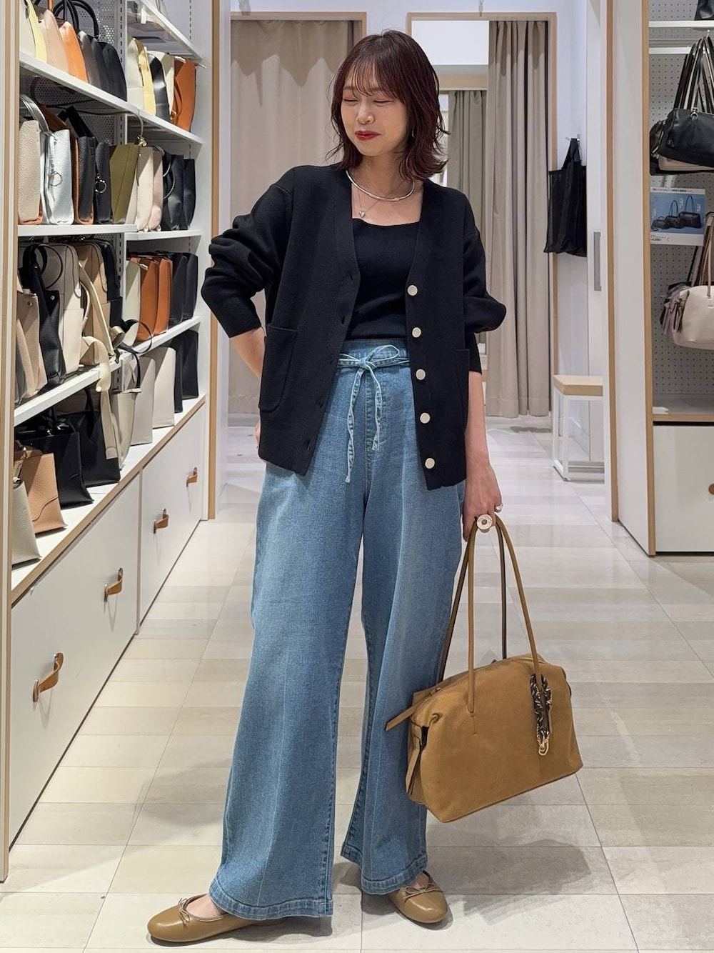 ▼詳しいサイズ感や着心地も記載しています▼ Vネックカーディガンにワイドデニムを合わせてキレイめカジュアルコーデにしました(^^) カーディガンは程よい厚みでサラサラしていて着心地抜群!オンオフどちらも使えます!ボタンを閉めてトップス風にするとスッキリ見え! デニムはとっても柔らかくて履き心地がいいです!リボンベルト付きでポイントに! 【着用サイズ】 カーディガン→Mサイズ ゆったりしています! 腰にかかる長さです! 程良い厚みの素材でチクチク感もなく肌触り◎ 長い期間使えそうです! オンオフどちらにも◎ デニム→Mサイズ Sでもサイズは問題なく履けますが、ゆったり履きたかったのでMサイズを選びました! ウエストはゴムで楽ちんです! 生地も硬くないのでデニムなのに楽ちん! バギーデニムより太めのシルエットです! 同素材のリボンベルト付き! シューズ→Mサイズ LサイズだとカパカパするのでMサイズを選びました! クッションが効いていて歩きやすいです!