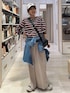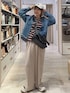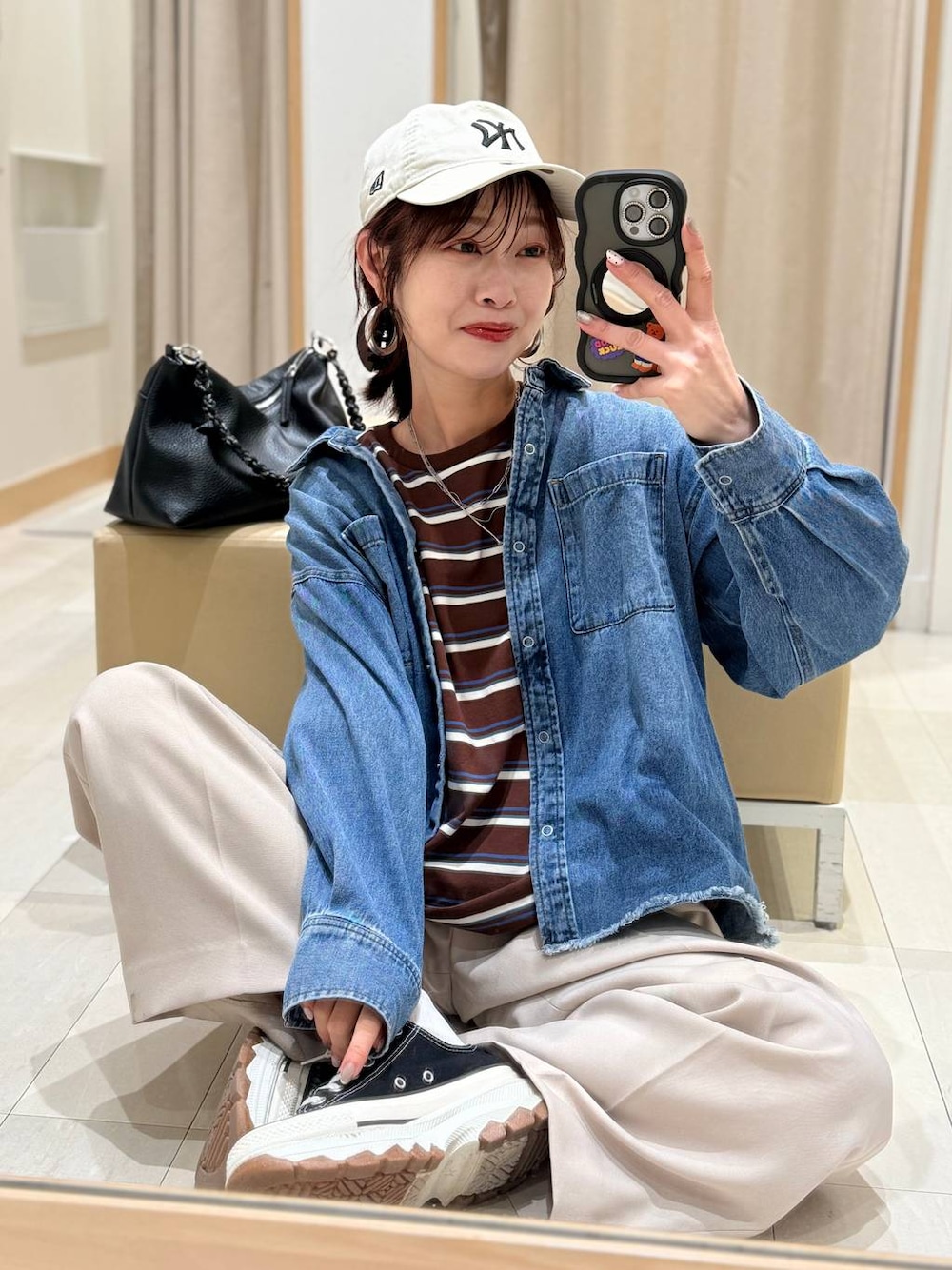 ▼詳しいサイズ感や着心地も記載しています▼ 出勤コーデ♡ デニムシャツにボーダーTとワイドパンツを合わせてカジュアルコーデにしました(^^) デニムシャツは前は短めですが後ろはしっかりお尻も隠れる安心丈!Aラインのシルエットがメンズライクになり過ぎずオシャレ見え! Tシャツはマルチボーダーが可愛くて一目惚れ! 【着用サイズ】 シャツ→Lサイズ Mサイズでもゆったりです!長めで着たいのでLサイズを選びました! 前は短めでスッキリ、後ろはお尻がしっかり隠れる長さで使いやすさ抜群! 色落ちがオシャレ見え! Tシャツ→Lサイズ 元々ゆったり大きめですが、オーバーサイズが好きなのでLサイズを選びました! 袖口にリブが付いていて腕捲りもしやすいです! パンツ→Mサイズ Sサイズでも履けますが、ゆったり履きたかったのでMサイズにしました!カジュアルにも履きたい方はゆったりめでも◎ 丈もしっかりあるので問題ないです! ウエスト後ろはゴムなので楽ちんです! しっかりしたスーツのような生地感です!