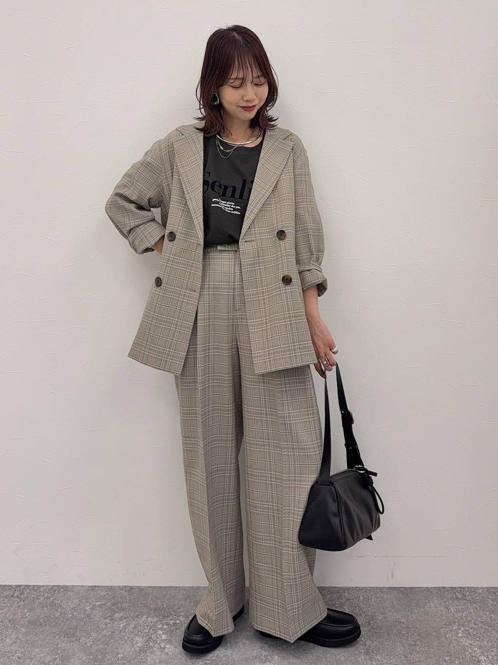 ▼詳しいサイズ感や着心地も記載しています▼ ダブルジャケットに同素材のワイドパンツを合わせてセットアップコーデにしました(^^) お仕事コーデにはもちろんおでかけコーデにもぴったり!金ボタンなのでかっちりし過ぎない!サラッとしていて着心地も◎カジュアルに着回しも出来ます! 珍しいチェック柄のセットアップはオシャレでとても可愛いです! 【着用サイズ】 ジャケット→Mサイズ いつも通りで◎ ダブルのデザインでゆったりしています! お尻が隠れる長さです! 裏地無しでサラッと羽織りやすいです! じゃぶじゃぶお洗濯可能で皺にもならない! トップス→ショート ゆったりしています! ウエストが隠れる短めの長さでスッキリ見えます! 薄手のスウェット素材です! 6分袖で袖口の広いデザインがポイントになります! パンツ→Mサイズ しっかりゆとりと長さが欲しかったのでMサイズを選びました! フロントファスナーなしで、ウエストはゴムと紐で調整可能です! サラッとした薄手生地感で長い期間使えそうです! シューズ→Mサイズ LサイズだとカパカパするのでMサイズを選びました! クッションが効いていて歩きやすいです!