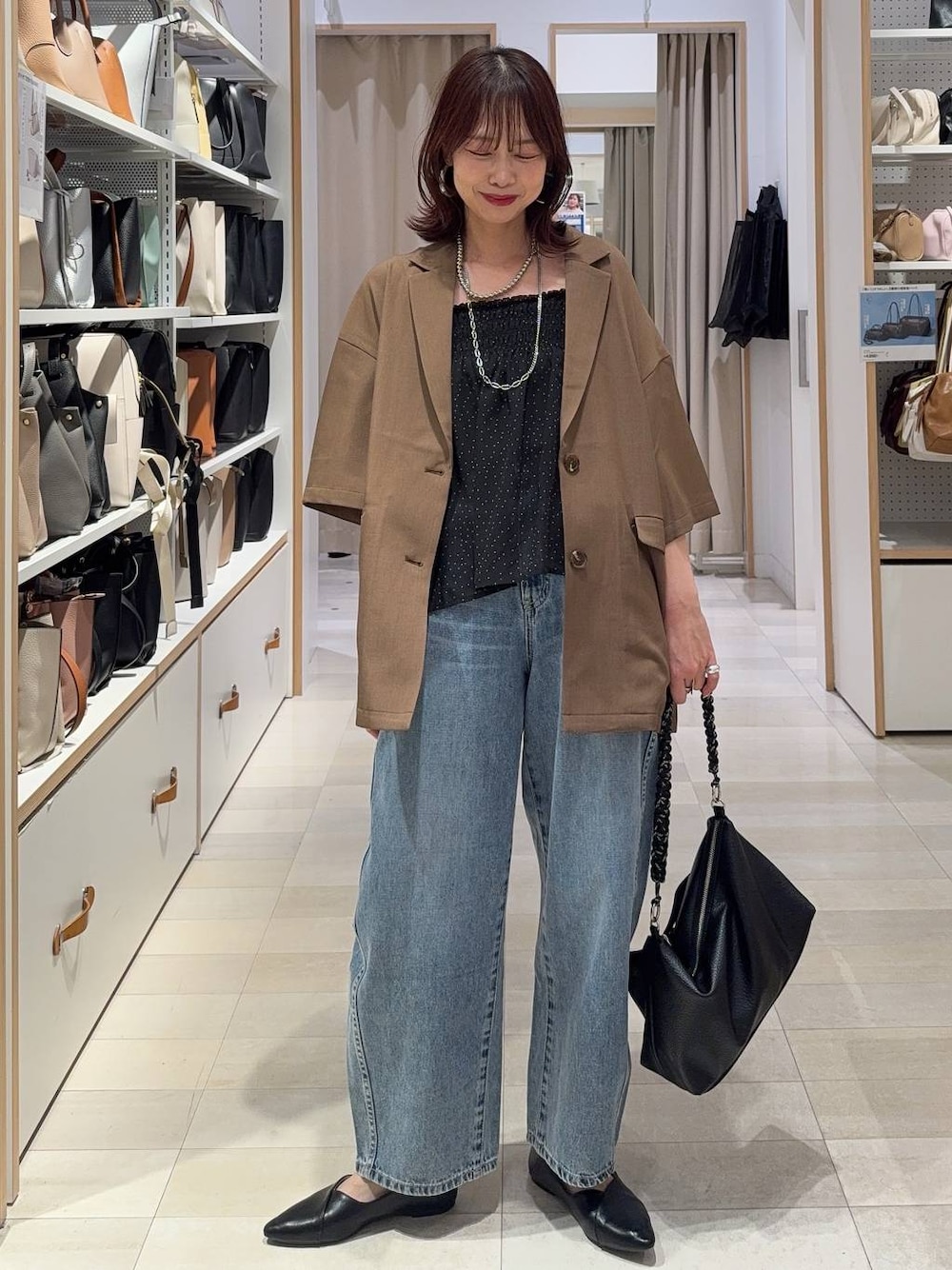 ▼詳しいサイズ感や着心地も記載しています▼ 5部袖ジャケットにドットのシフォンタンクとバレルデニムを合わせてキレイめカジュアルコーデにしました(^^) ジャケットは羽織るだけでこなれ感抜群!シフォンレイヤードのタンクトップだとお腹周りは隠していてもスタイルアップしてみえます!小さめドット柄がとっても可愛いです! デニムはカーブのシルエットがオシャレ見え! 【着用サイズ】 ジャケット→Mサイズ オーバーサイズでゆるっとした感じが可愛いです! シングルボタンだから開けて着てもスッキリ! 裏地なしでジャケットだけどシャツ並みに着やすい! シワになりにくい素材なのも◎ タンクトップ→Mサイズ シフォンとリブカットソーのレイヤードです! シフォンは透け感のある素材なので重なっていても暑くないです! 胸元はスッキリ見えるけど開き過ぎていないスクエアデザイン! 下着のストラップが隠れるけど透けてもスッキリ見える絶妙な太さの肩紐! デニム→Sサイズ スッキリ履きたかったのでSサイズを選びました! タックのないデザインなのでインした時もウエスト周りがスッキリ! カーブのシルエットですが広がり過ぎず、キレイめ派の方でも使える形だと思います。 シューズ→Mサイズ LサイズだとカパカパするのでMサイズを選びました! クッションが効いていて歩きやすいです!