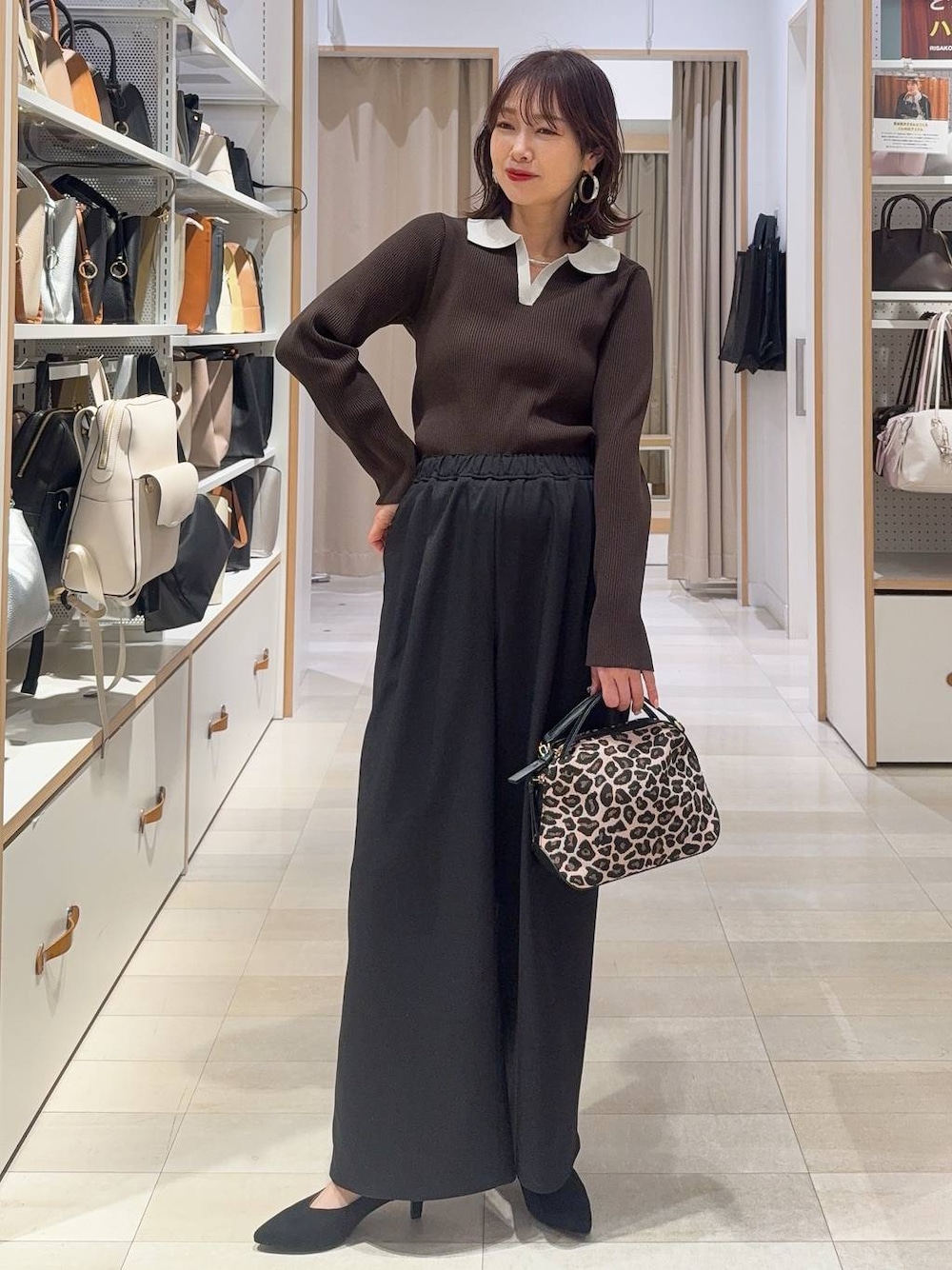 ▼詳しい情報はサイズ感や着心地も記載しています▼ 襟付きニットにワイドパンツを合わせてキレイめコーデにしました(^^) ニットは襟がバイカラーでポイントに!タイトなリブニットだからトレンドの襟付きでも大人っぽい! パンツは広めのワイドで足のラインを拾いません!タイトなトップスとも相性◎ 【着用サイズ】 ニット→Mサイズ いつも通りで◎ 程よくフィットして着心地がいいです! チクチク感がなく肌触りも◎ パンツ→Sサイズ ゆとりがあるのでMサイズだと大きく見えたのでSサイズを選びました!長さもしっかりあります! 足のラインを拾わず細見えします! ウエストは太めでシャーリングゴムなので楽ちん! シューズ→23.5 いつも通りのサイズで大丈夫です! ヒールでも歩きやすいです!