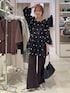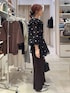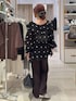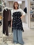 ▼詳しいサイズ感や着心地も記載しています▼ のコーデ♡ 刺繍ブラウスにフレアパンツを合わせて大人可愛いコーデにしました(^^) ブラウスは長めの着丈でゆるっと感が可愛いです!刺繍のお花が今年らしくて一枚で映えます!ベルトでマークするとスッキリ感アップ!肩紐を通してキャミとしても着回しできます! パンツはジャガード素材でオシャレ見え!ピタっとし過ぎないフレアだから足のラインも気にならず脚長効果も◎ 【着用サイズ】 ブラウス→フリーサイズ ゆったりしていて、太ももにかかる長さです! 黒でも透け感があり軽やかです! 元々シワ加工なのでシワは気にならなさそう! そのままでも、オフショルでも、キャミとしても使えます! インナー→Mサイズ サイズ表通り選んで問題なかったです! カップがしっかりしているのでホールド感もあります! 後ろにゴムがないので締め付けも少なく段差もつかないです! パンツ→Mサイズ いつも通りで◎ ウエスト後ろはゴムなので楽ちんです! ぽこぽこしたジャガード素材で可愛いです! 細過ぎないので足のラインは拾わず細見えします!