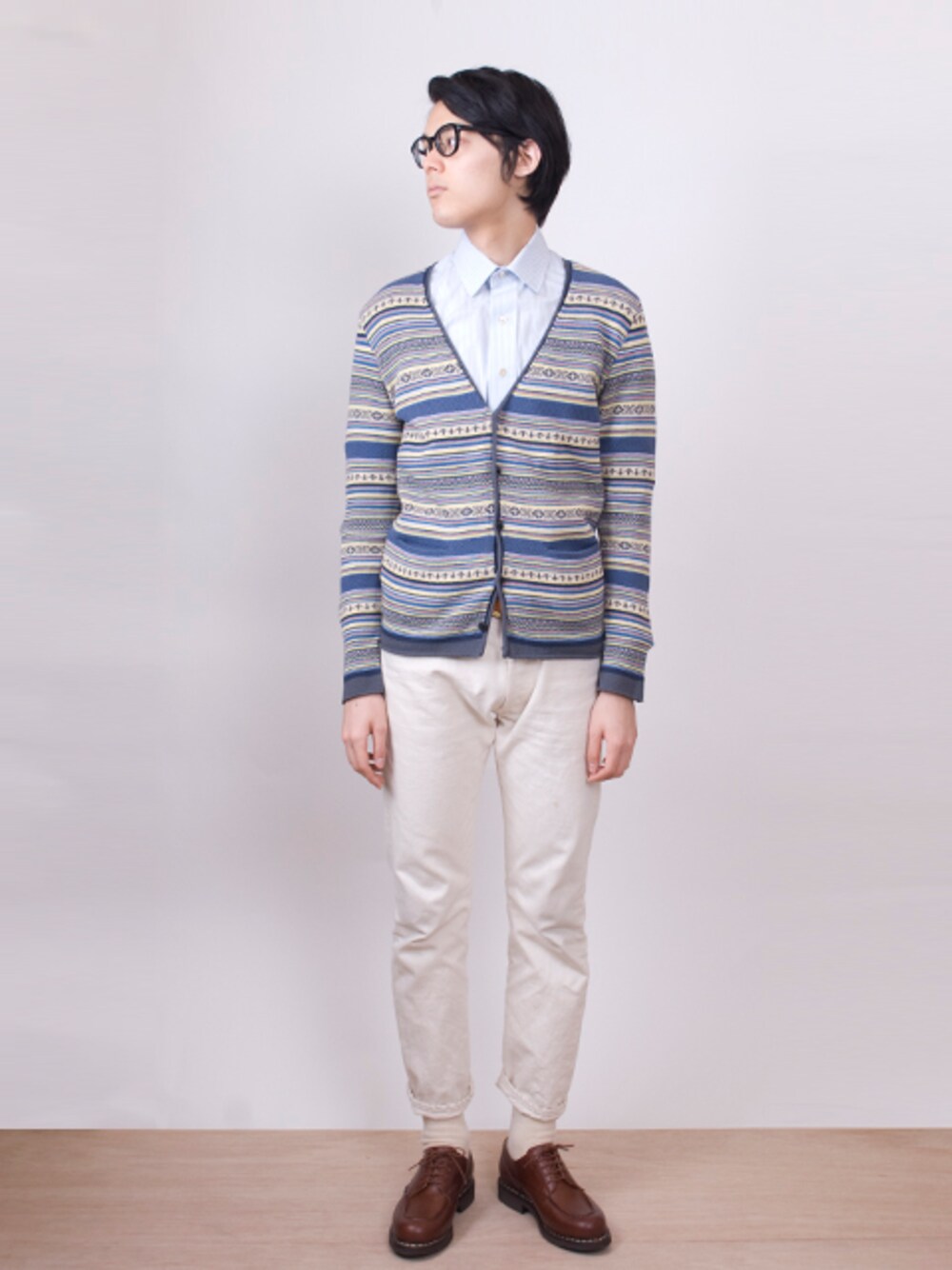 ・tsuki.s フェアアイルカーディガン ¥41040 ・pascal donquino リブシャツ ¥21600 ・arikiri 501生成りデニム ¥17640 ・paraboot CHAMBORD(シャンボード) ¥63000