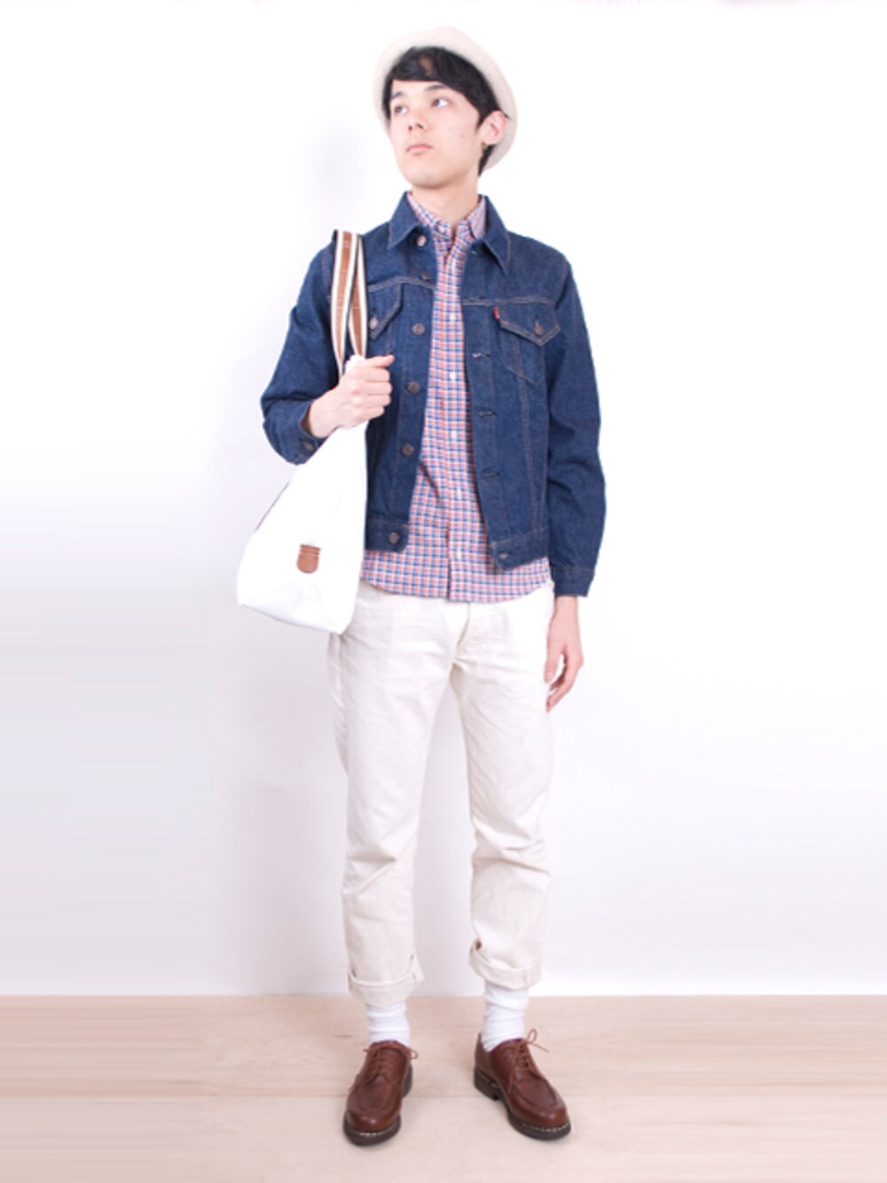 ・ARIKIRI 3rd Type・Gジャン ¥24150 ・ARIKIRI 501生成りデニム ¥17640 ・PARABOOT CHAMBORD ¥63000 ・PASCAL DONQUINO キャンバストートバッグ ¥29400