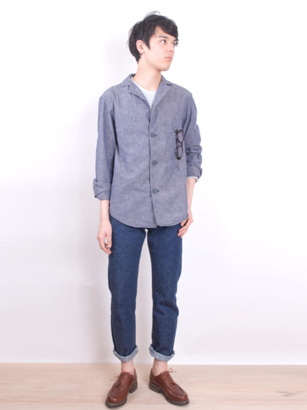 LOLO シャツジャケット ¥18,144 STILL BY HAND クルーネックカットソー ¥6,480 arikiri 501インディゴデニム ¥18,144 PARABOOT CHAMBORD(シャンボード) ¥64,800