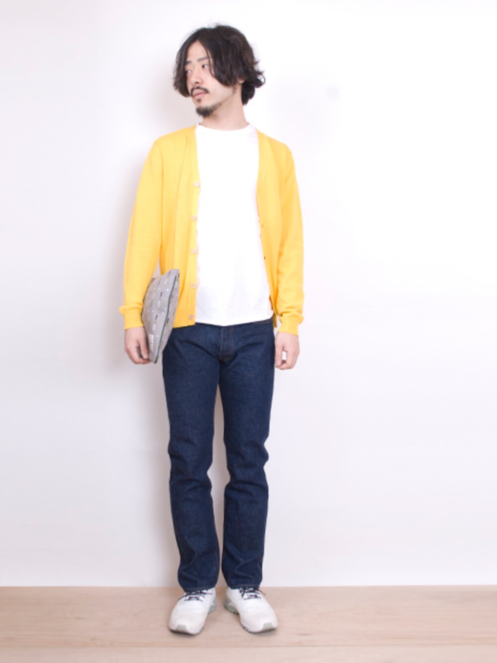 HARRISS コットンニットカーディガン ¥15,120 STILL BY HAND クルーネックカットソー ¥6,480 arikiri 501インディゴデニム ¥18,144 MARCOMONDE スポーツ柄ブリーフケース ¥17,280 ORPHIC HELLION ¥30,240