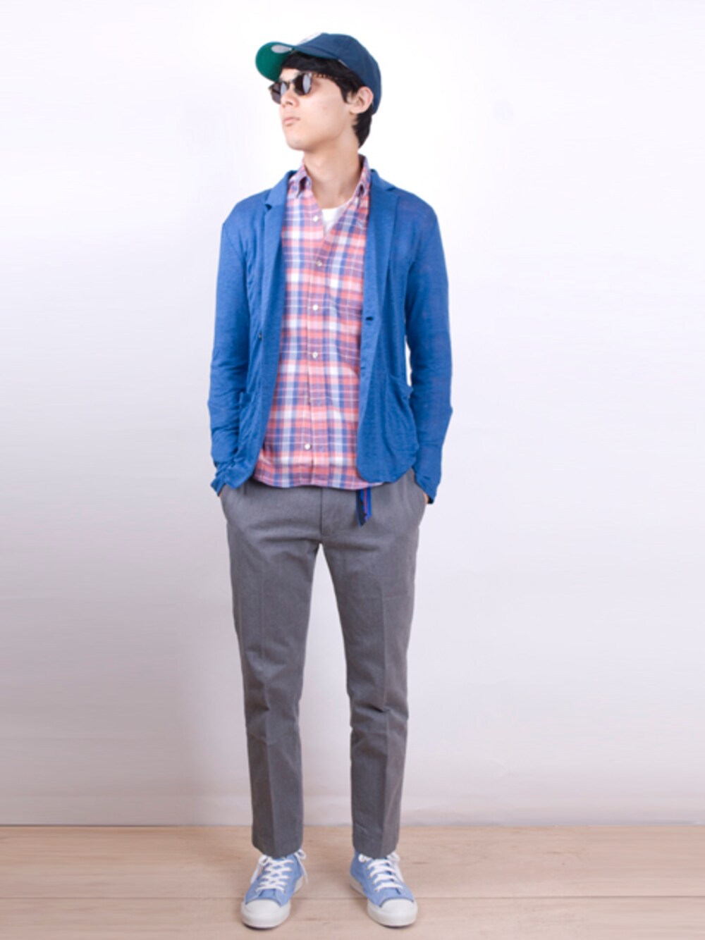 ・LiSS リネンカットソージャケット ¥11880 ・arikiri アリさんチェックシャツ ¥12960 ・arikiri トラウザーパンツ ¥14040 ・pro-keds ロイヤルアメリカ ¥11664