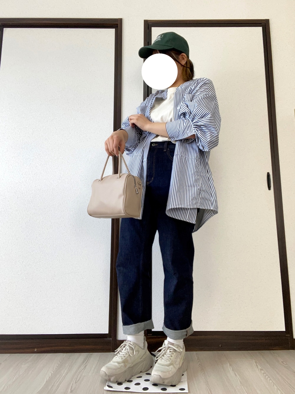 ストライプシャツが可愛い✨ shesaidthatのコラボキャップが被りたくて久々にこんなにカジュアルでまとめた😌