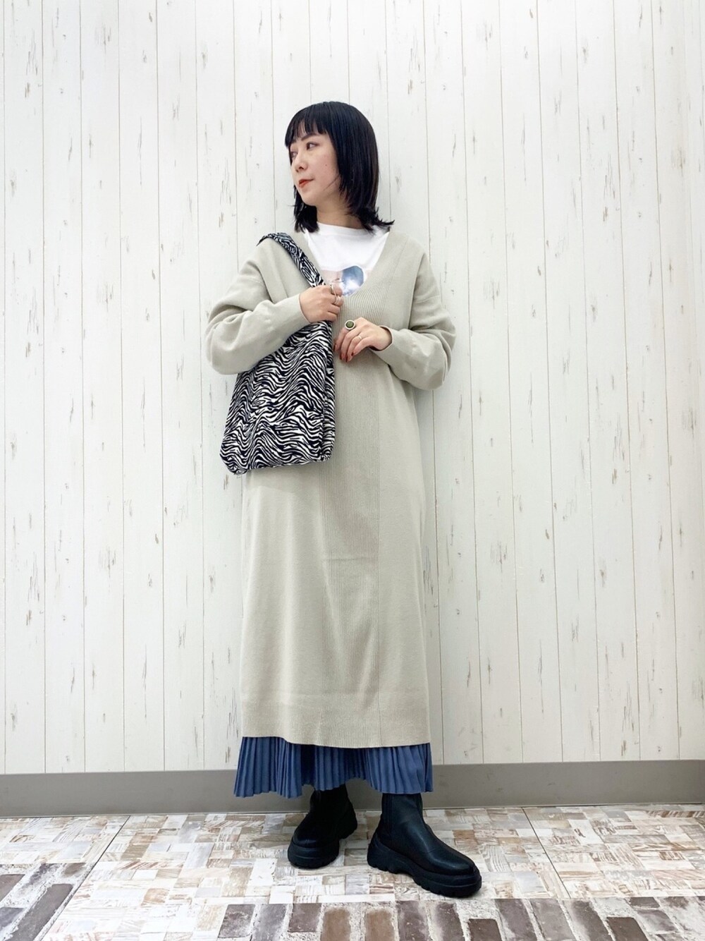 Vネックワンピースに重ねてロンT合わせで、より長さを出すためにスカートもレイヤード。 プロフィールの🖥このマークをクリックすると他のスタイリングも観れるのでチェックしてね☺︎★ Instagram→@__see.doo