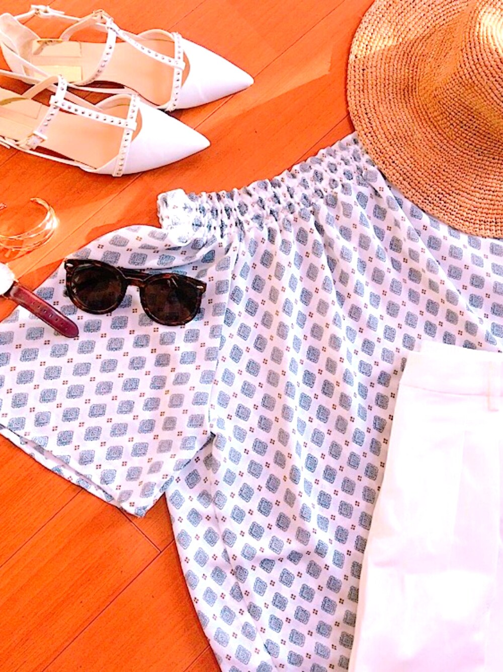 全体的にホワイトコーデ👕 旅行とかだったらハットとサングラスも🕶👒
