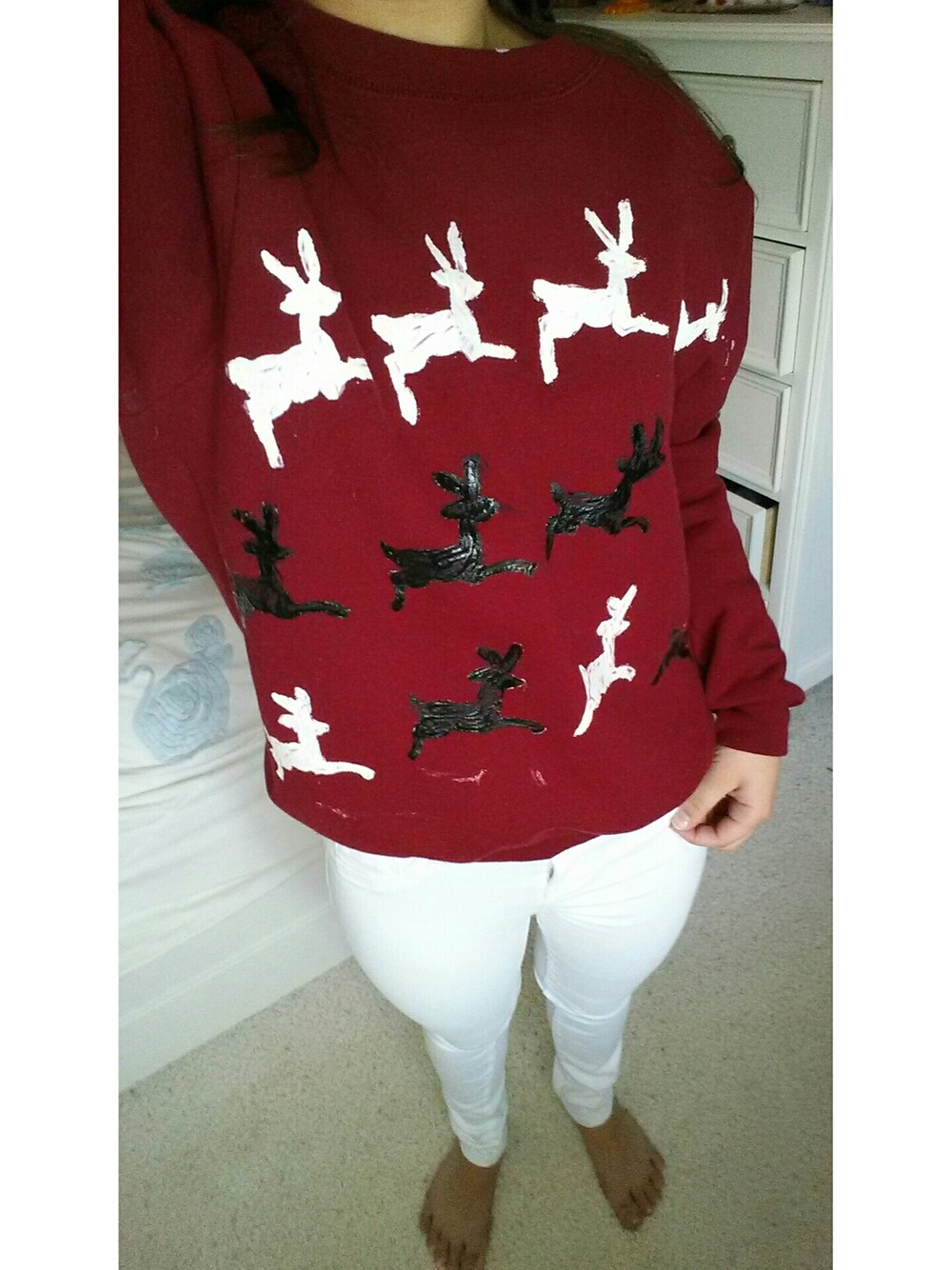 Wearing reindeer sweaters in April because the spirit of Christmas never dies