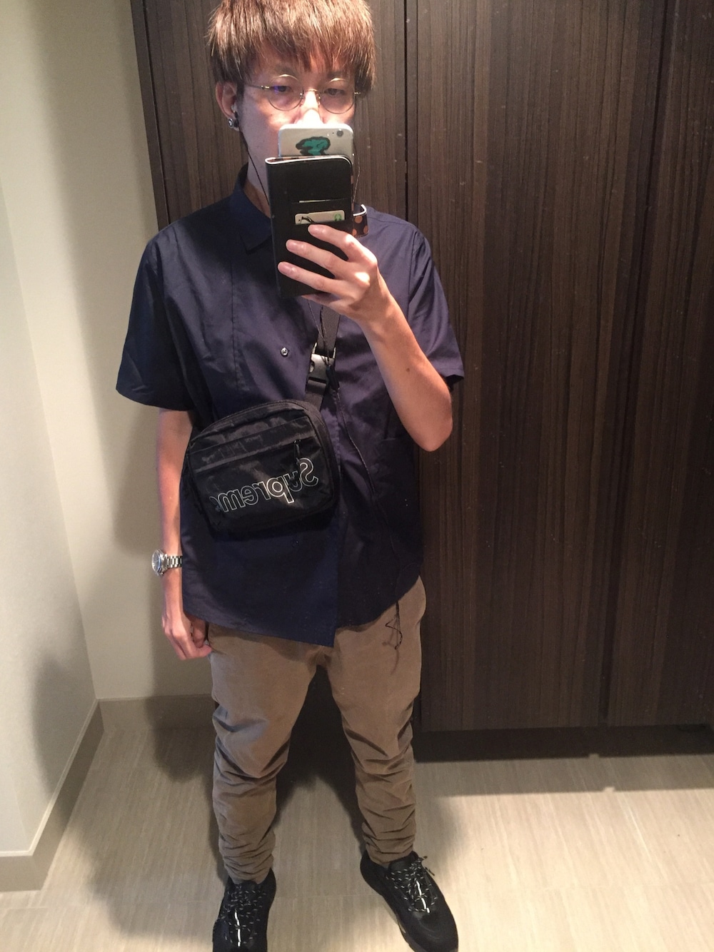 先週ゲットしたsupremeのショルダーを初おろし! GU×キムジョーンズのシャツと組み合わせてみました!