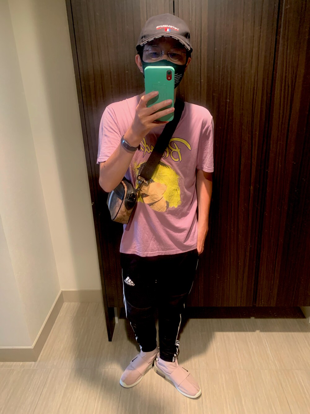 Tシャツとトラックパンツは古着屋で調達。合わせて1200円