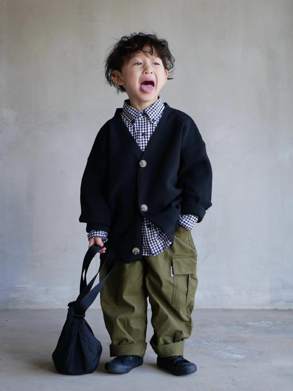 パンツだけ変えたら フォーマルにも使えそうなコーデ👔 トウはカーゴパンツでカジュアルな感じにしました🫰🏻 このパンツさすがEDWIN👍🏻 ロールアップしてもシルエット綺麗が維持されてた⸝⸝ ギンガムチェックシャツとカーディガンの合わせは 可愛すぎるのでぜひ♡ 羽織でもつかえるから春夏も大活躍だな 👟はオールブラックのハイカット⸒⸒ これからハーフパンツと合わせて履くのが楽しみ🖤