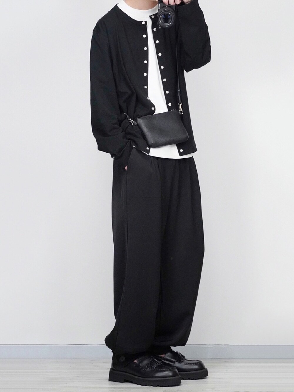 モノトーンコーデ😎 白と黒のシンプルコーデを組みました❗️ agnes b. のカーディガン、ボタンがとても可愛いです😊 ボタンを留めても、開けても存在感がとても強いのでシンプルなアイテムと合わせるのが良いと思います🙆♂️ 薄手でこの時期にちょうど良いです👌 Instagram→@sei_wearでは モノトーン中心で様々なコーデを紹介してます! よかったら見て下さい😆
