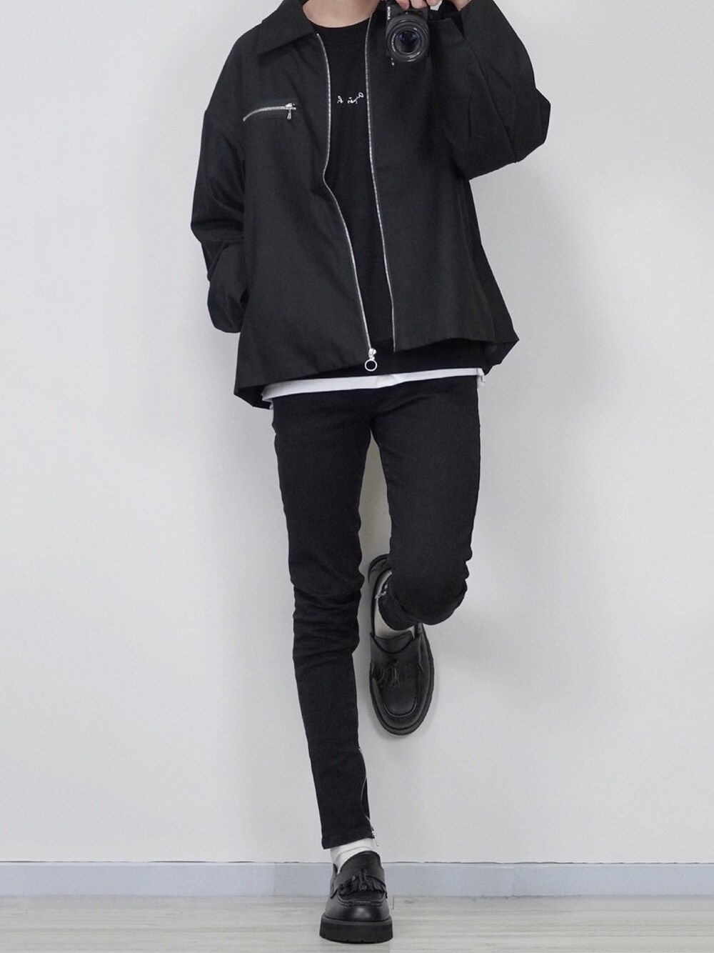 ブラックコーデ🔥 白を少し入れるだけでとてもキレイにまとまります👌 DOOPZのジップブルゾンとスキニーの組み合わせ最高です😆 Instagram→@sei_wearでは モノトーン中心で様々なコーデを紹介してます! よかったら見て下さい😆