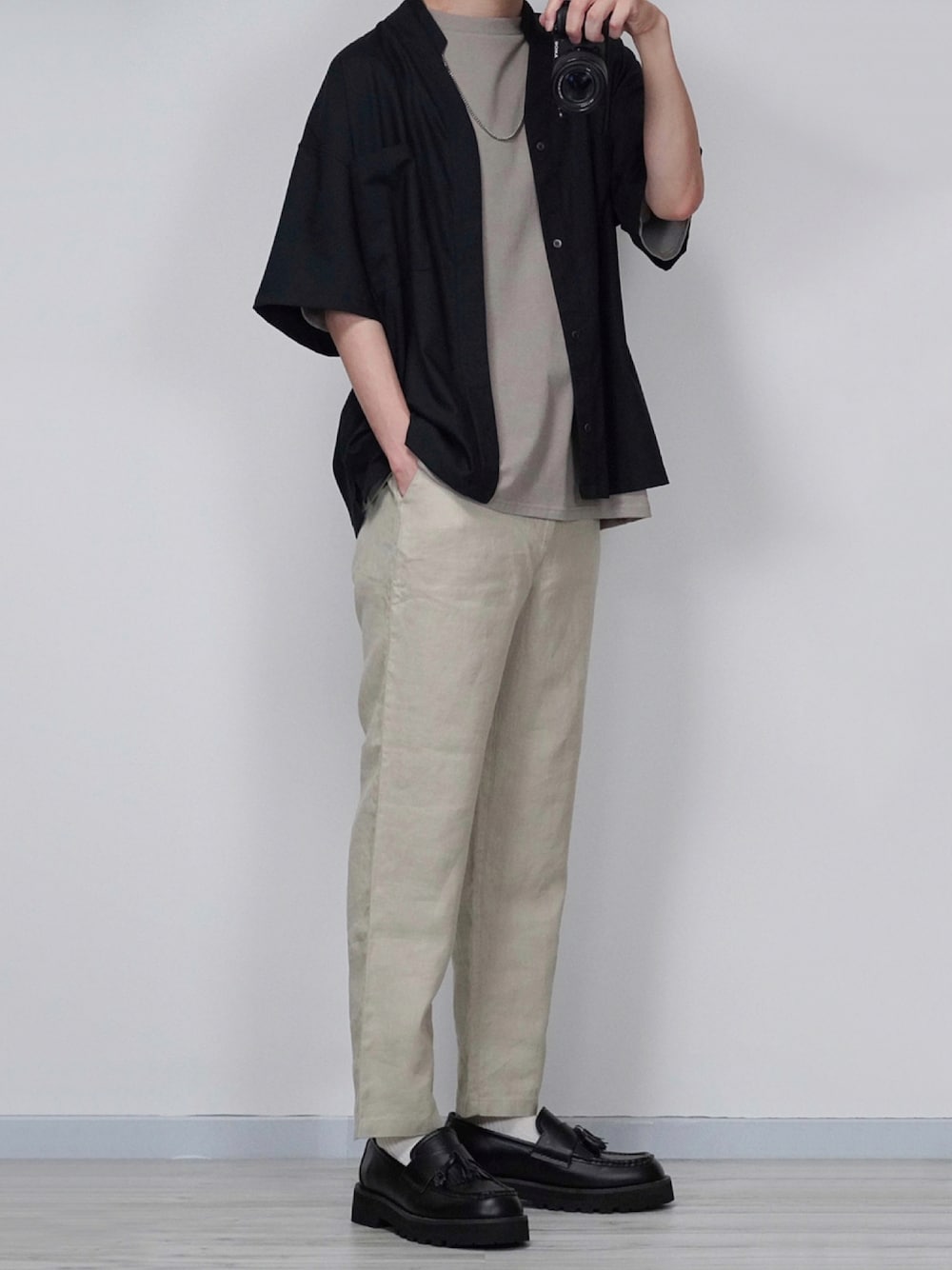 ブラック×ベージュ DOORSのリネンパンツ着用。 ブラックと合わせて落ち着いた雰囲気に👌 トップスはTUTTUのビッグT着用。 パンツの色に寄せてスッキリとまとめました🙌 Instagram→@sei_wearでは モノトーン中心で様々なコーデを紹介してます! よかったら見て下さい😆