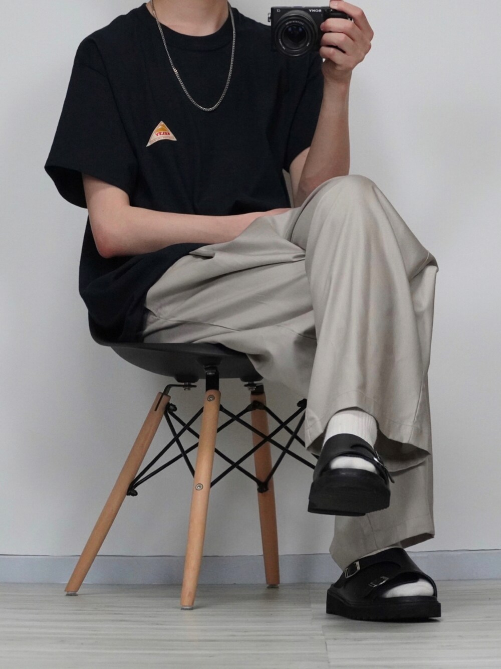 ブラック×ベージュ KELTYのTシャツ着用。 シンプルなロゴがカッコいいです🙌 履いているサンダルはEMMA CLOTHESのシャークソールサンダル🕺 人気で一時予約販売になっていましたが再入荷しました!! シンセティックレザーで他とは違ったサンダルです👌 夏のシンプルなコーデもこれを合わせるだけで全く違った印象になります🙆♂️ Instagram→@sei_wearでは モノトーン中心で様々なコーデを紹介してます! よかったら見て下さい😆