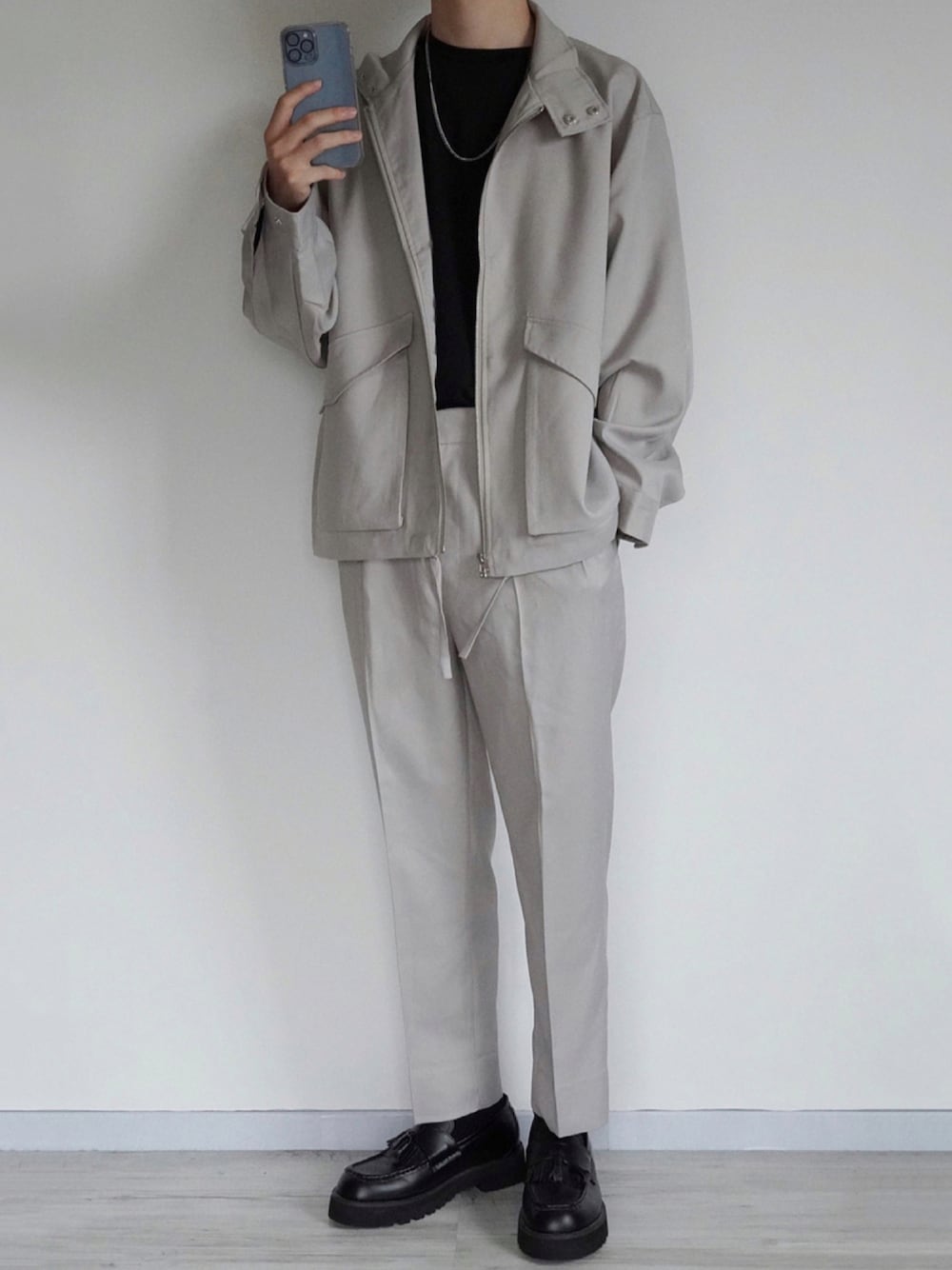 セットアップコーデ LUCYのセットアップ着用 様々な着方が楽しめるスタンドネックブルゾン👌 オーバーサイズの割に丈がやや短めなのでタックインするとカッコいいです👏 スラックスはウエスト部の後ろ側がゴムになっているので履きやすさ◎ どちらも単体で使いやすい!! 現在タイムセール中です🙆♂️ _________________________________ Instagram→@sei_wearでは モノトーン中心で様々なコーデを紹介してます! よかったら見て下さい😆