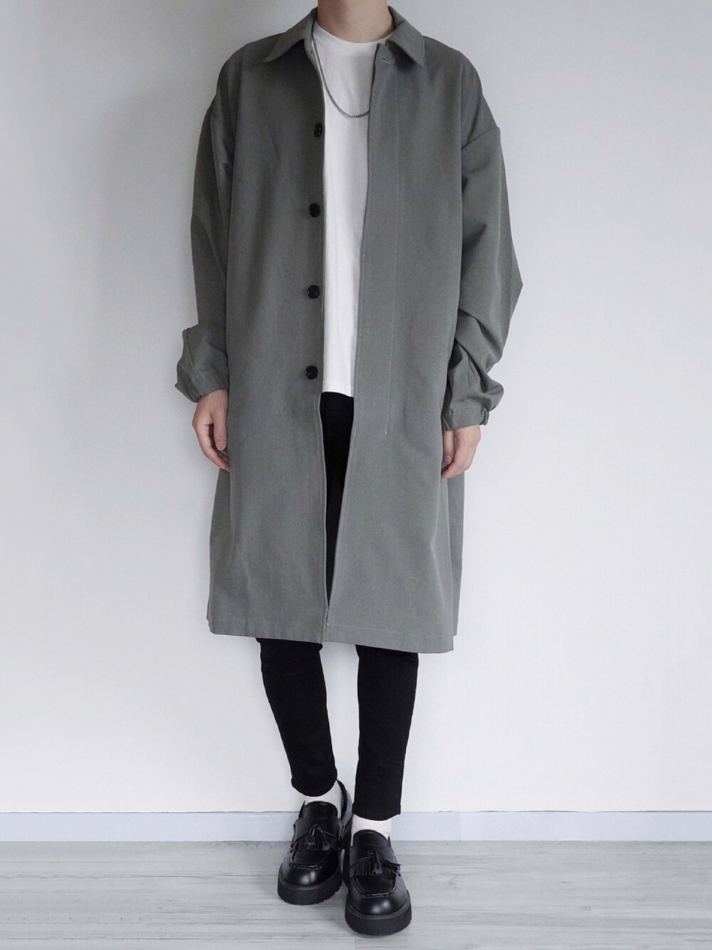 ロングコート×スキニー STYLEMIXERのスラブバックプリーツロングコート着用 カーキっぽいグレーがめちゃくちゃ気に入ってます🙌 生地はそこまで厚くないので今の時期にちょうどいいです👌 インナーを代えれば真冬でも十分活躍してくれます!! _________________________________ Instagram→@sei_wearでは モノトーン中心で様々なコーデを紹介してます! よかったら見て下さい😆