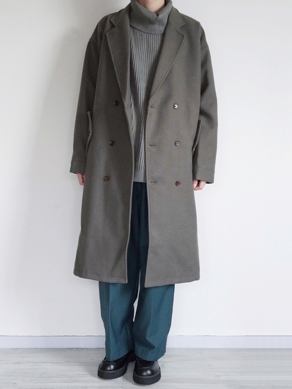 seiのチェスターコート「ビーバーメルトン オーバーサイズ ロングダブルチェスターコート (EMMA CLOTHES)」を使ったコーディネート