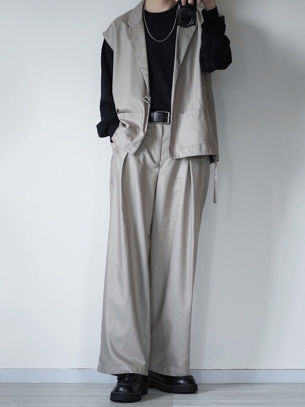 ベスト×ワイドパンツ ベージュのセットアップを使ったキレイめコーデ✌️ ベストは羽織るだけでめっちゃカッコ良くなります🙌 Instagram →@sei_wear