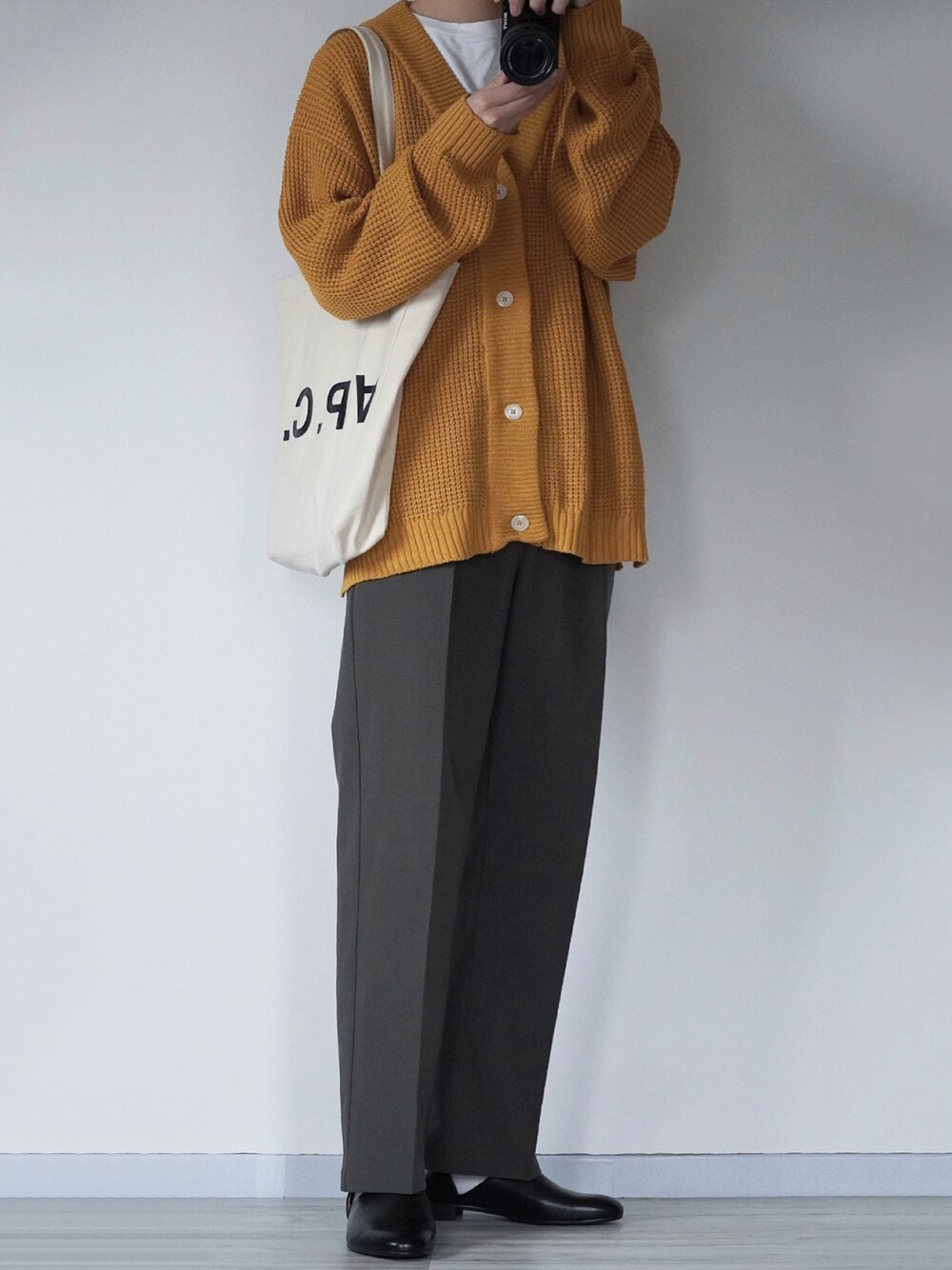 カーディガン×スラックス イエローとブラウンの組み合わせオススメです! HARUTAのスポックシューズはこれからの季節にドンピシャのアイテム👞 Instagram →@sei_wear