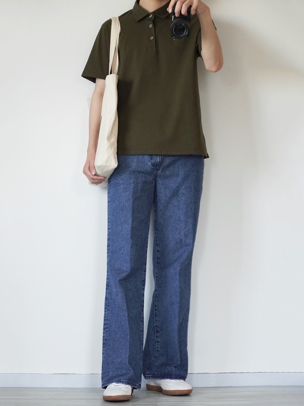 ポロシャツコーデ カーキを使って大人っぽく✌️ カーキとインディゴブルーの組み合わせがめっちゃ可愛いのでぜひ真似してみて下さい! Instagram→@sei_wear