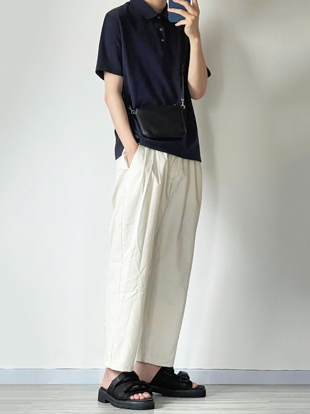 ネイビー×ホワイト 休日にピッタリのリラックススタイル✌️ 程よいゆるさが暑い日にちょうどいいです🙆♂️ Instagram→@sei_wear