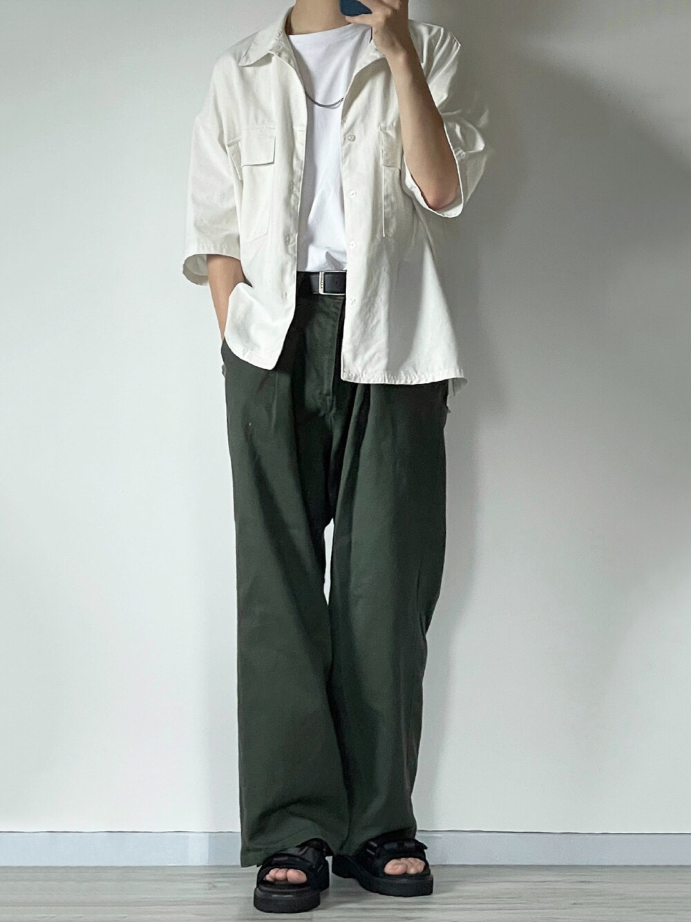 シャツ×ワイドパンツ キナリ×カーキで大人っぽく✌️ Instagram→@sei_wear