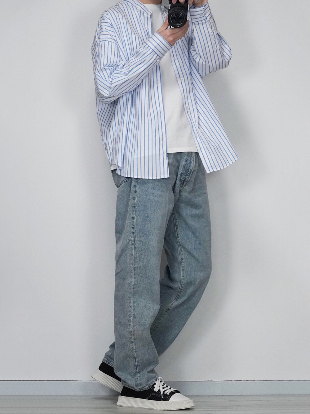 カジュアルコーデ ストライプシャツとデニムを合わせてみました✌️ Instagram→@sei_wear