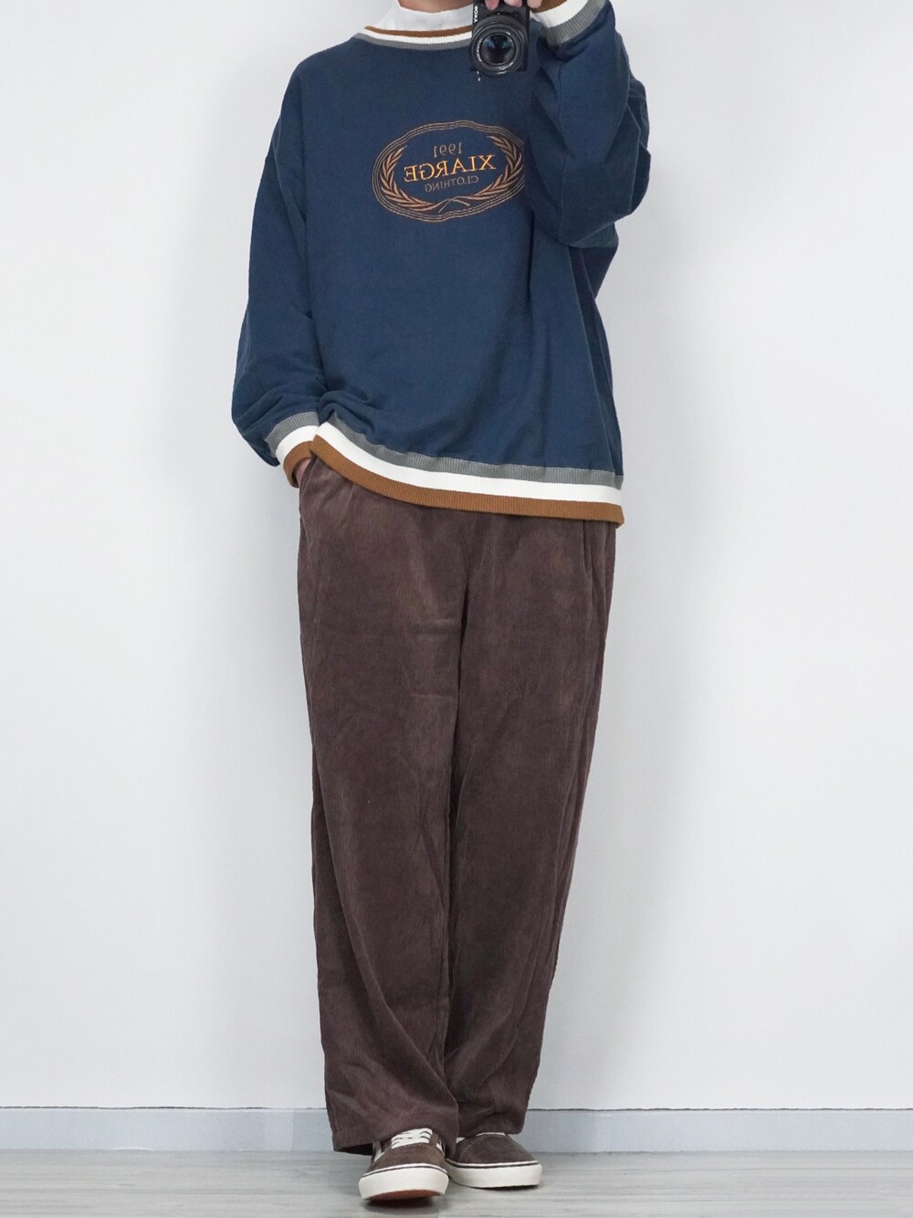 ブラウンコーデ ネイビー×ブラウンの秋コーデ🍁 このスウェットめちゃくちゃ可愛いです😊 Instagram→@sei_wear